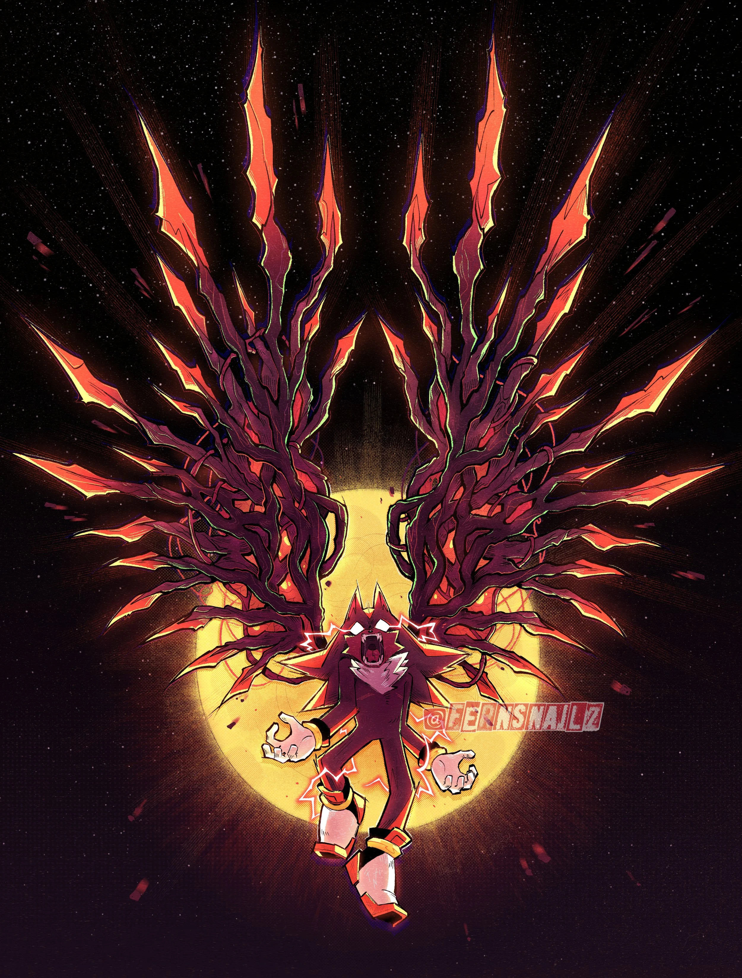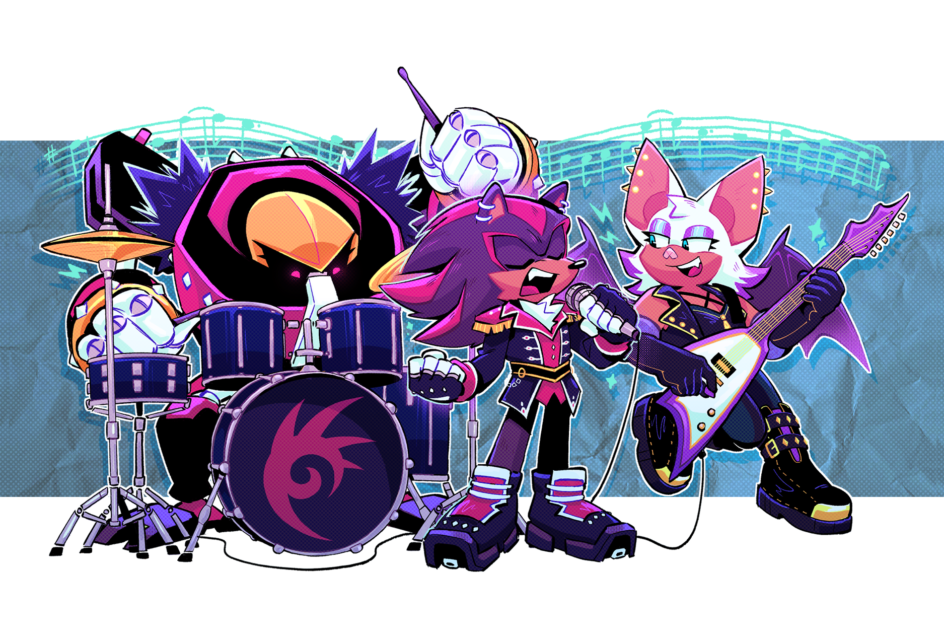 36 pages of artwork, sketches, and comics featuring Team Dark from the Sonic series. Zine is 5.8x8.3in with a matte cover and is saddle stitch (staple) bound.
