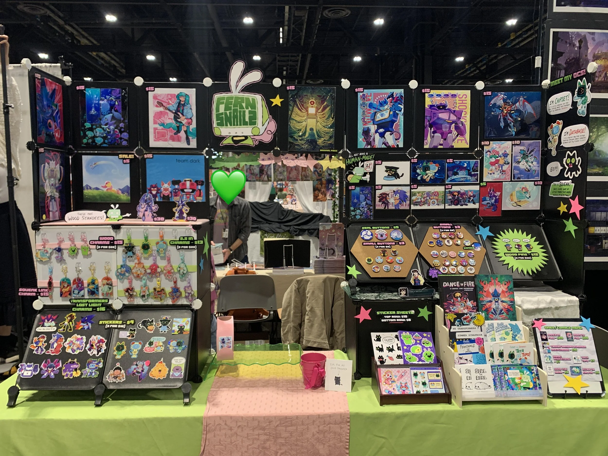 I’ve been tabling at conventions since early 2024 and have been running my online art shop for over three years. My shop’s website is snailzshop.bigcartel.com, and I post updates regarding it on my Blueskyand Tumblr.
